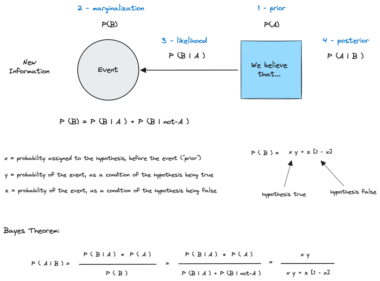 Here’s a more thorough description of the conditional probabilities in Bayes Theorem.