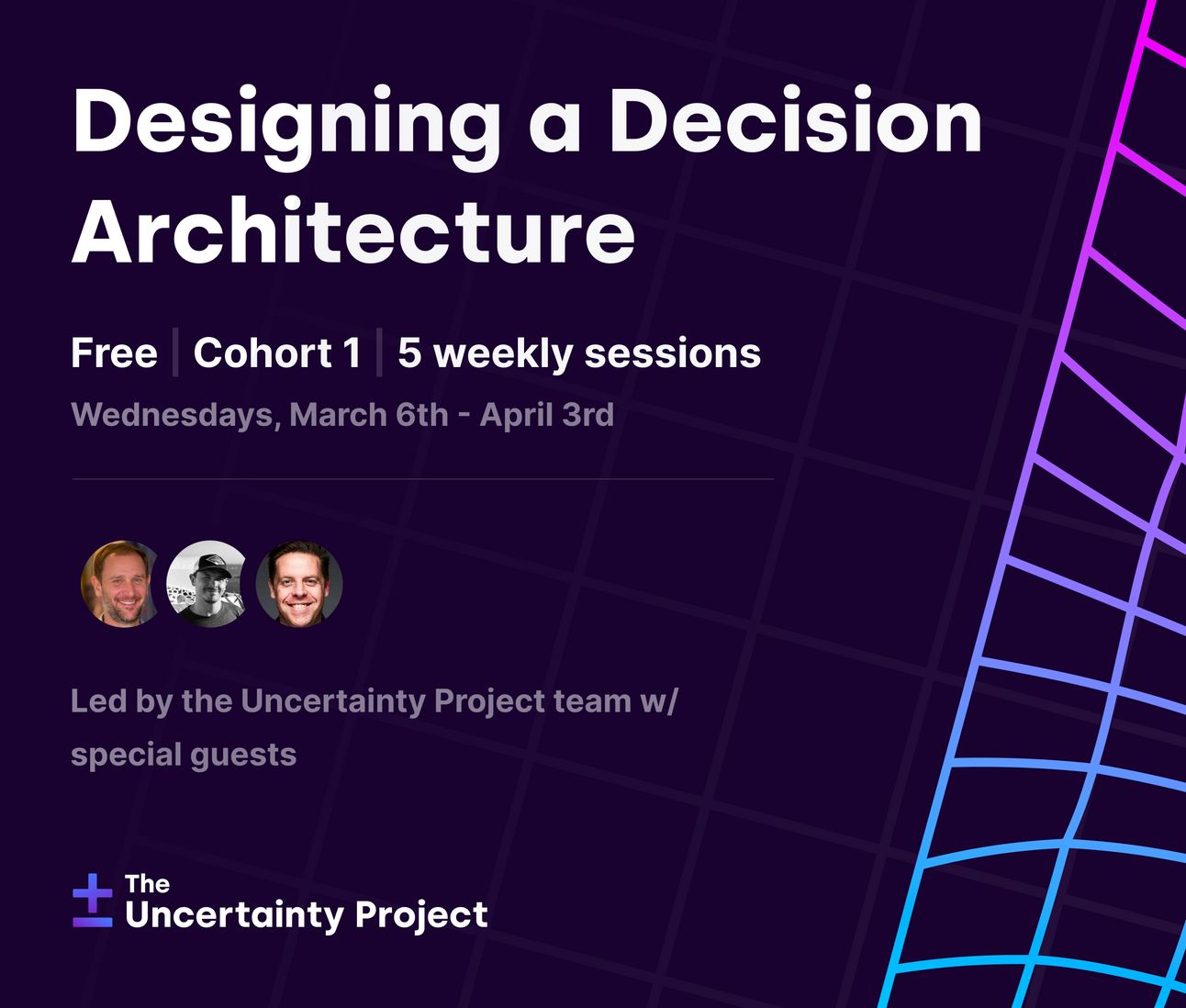 We’ve set up a series of 5 live sessions to cover topics around Decision Architecture. It’s free and exclusive to Uncertainty Project subscribers, but we will have a limited number of spots (just to make sure we can facilitate/manage actual discussion). Sign up for the waitlist if you’re interested!