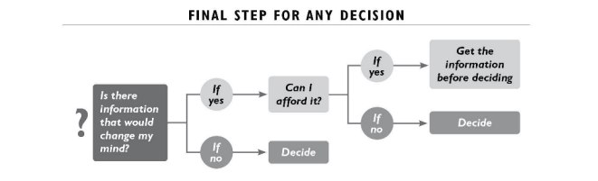 Particularly the 'final step' in the process that helps guard against the pursuit of perfect information. We tend to use more data and information as a security blanket. Annie Duke suggests explicitly identifying information that could change your mind and if so, understanding if it's worth getting.