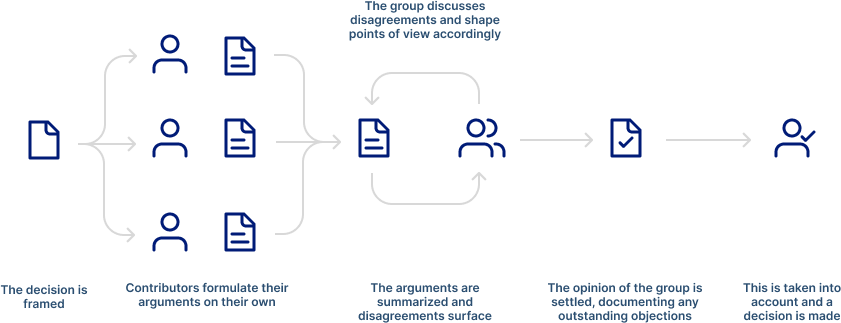 The Blueprint takes the 'consent and commit' approach. The goal here is for teams to make the answer to the question 'who makes what type of decision under what circumstance?' clear and explicit.
