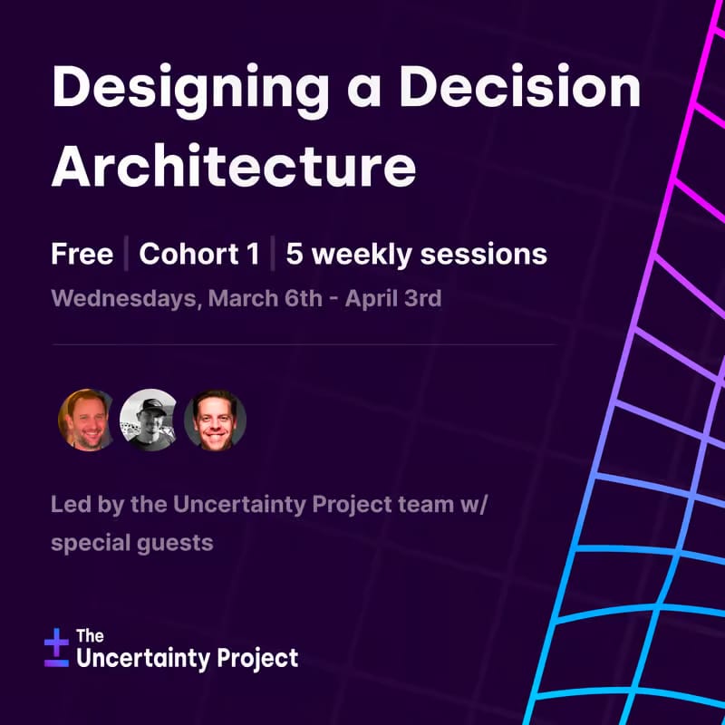 And again, we’ve set up a series of 5 live sessions to cover topics around Decision Architecture. It’s free and exclusive to Uncertainty Project subscribers, but we will have a limited number of spots (just to make sure we can facilitate/manage actual discussion). Sign up for the waitlist if you’re interested!