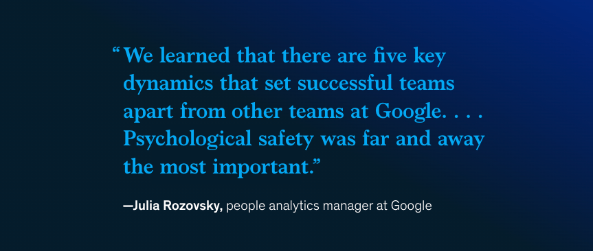 If you have uncertainty and interdependence, itâs absolutely vital to have psychological safety